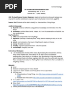 On day 1 will be discussing the first standard, the difference between living and non-living things.
