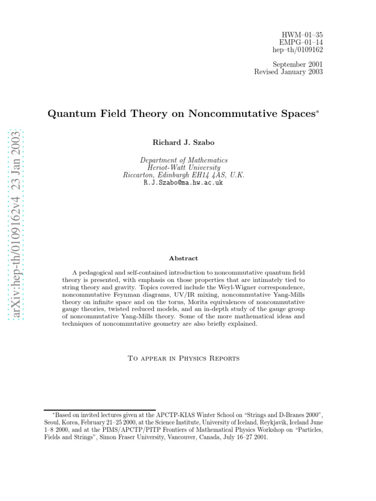 1–8 2000, and at the PIMS/APCTP/PITP Frontiers of Mathematical Physics Workshop on “Particles,