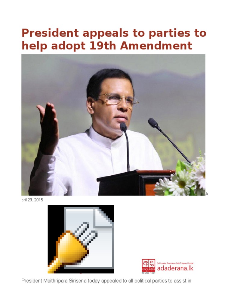 President Sirisena said that in addition to the 19th Amendment, a draft bill has been