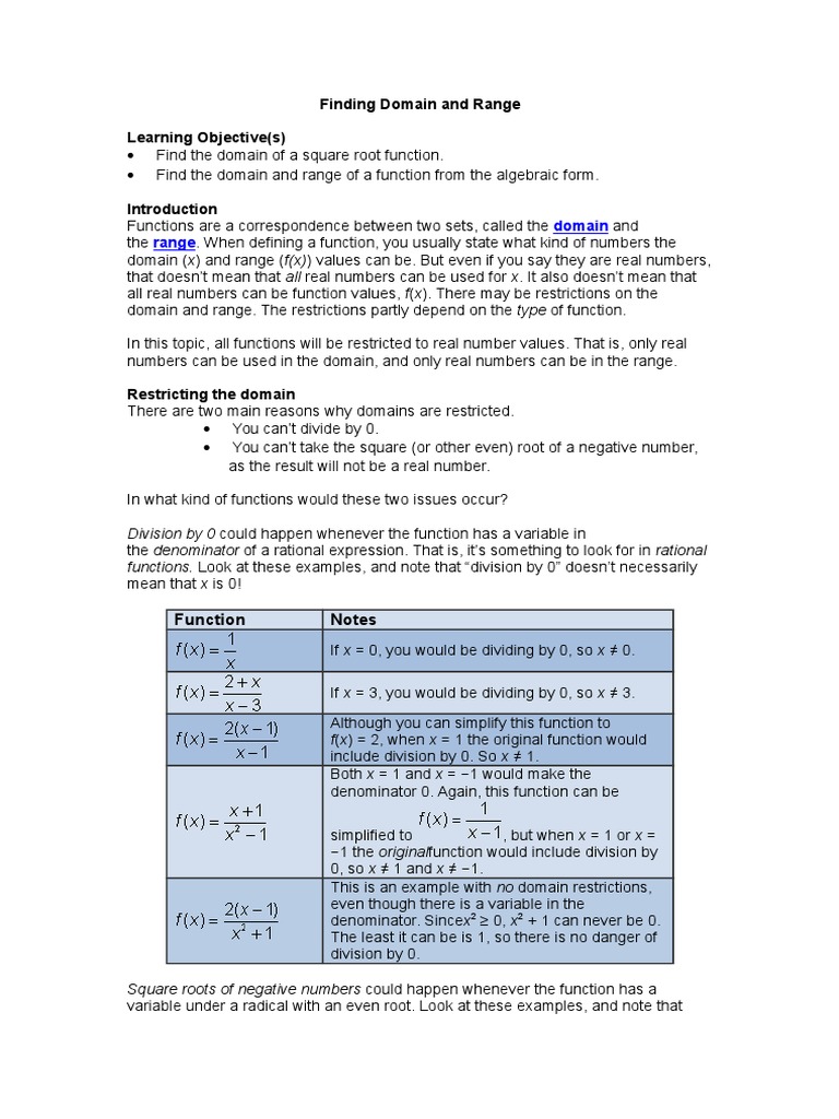 functions. Look at these examples, and note that division by 0 doesnt necessarily