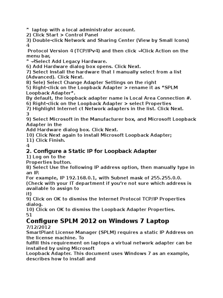 Loopback Adapter. This document uses Windows 7 as an example,