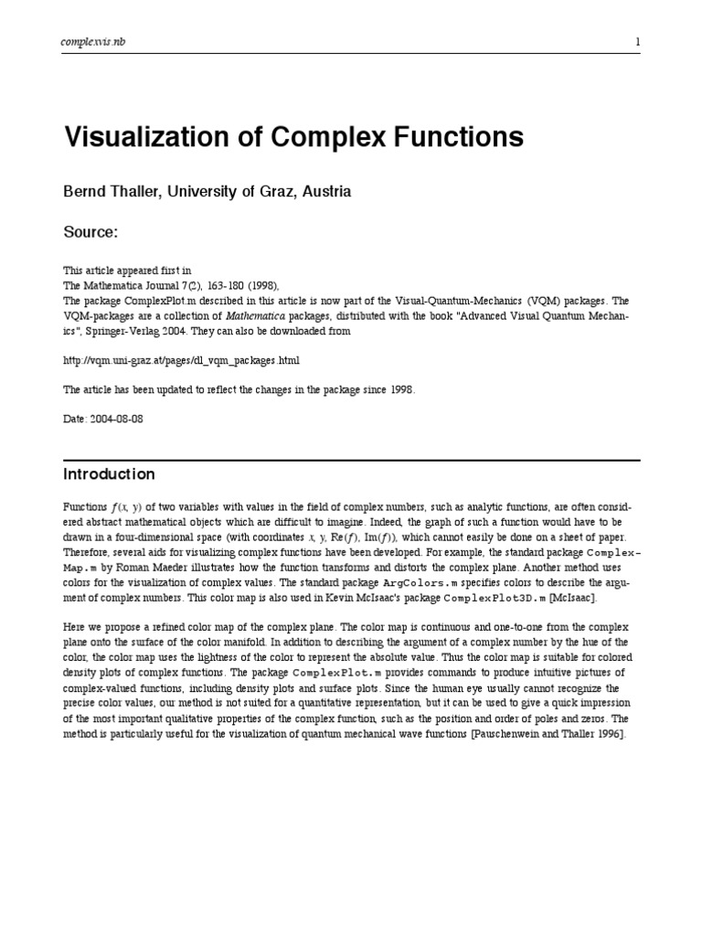 complex-valued functions, including density plots and surface plots. Since the human eye usually cannot recognize the