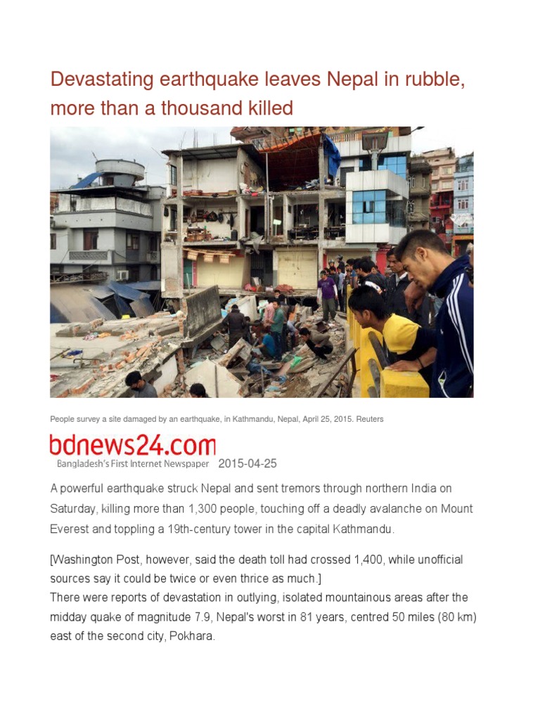 Everest and toppling a 19th-century tower in the capital Kathmandu.