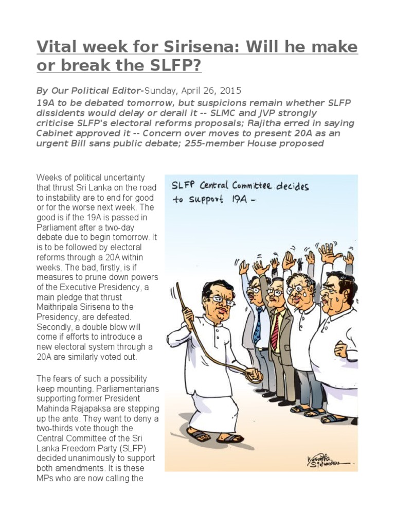 concern for Sirisena right now. In the event his MPs do not facilitate the passage of the