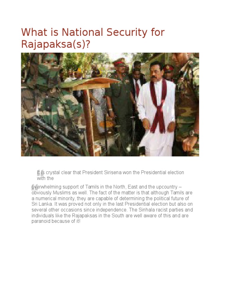 security! After all, Rajapaksas ruined the wealth of the country; he has now found a