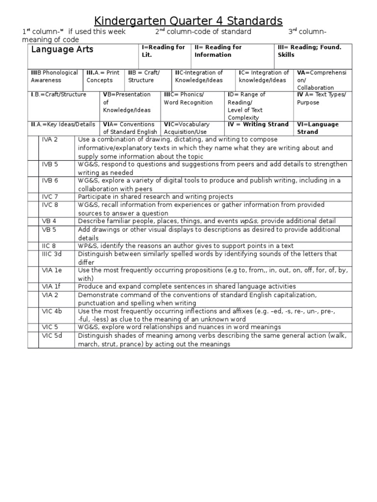 Kindergarten Quarter 4 Standards
