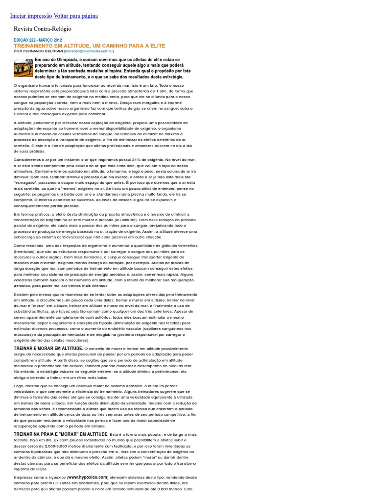 do mar e "morar" em altitude, treinar em altitude e morar no nvel do mar, e finalmente o uso de