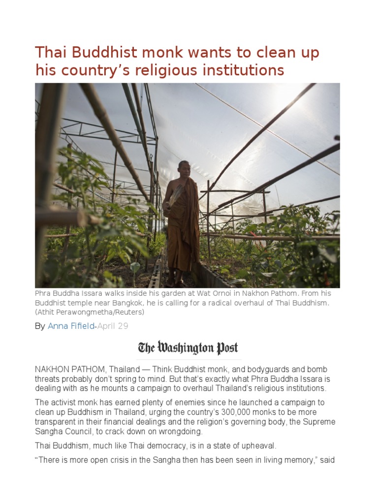 dealing with as he mounts a campaign to overhaul Thailands religious institutions.