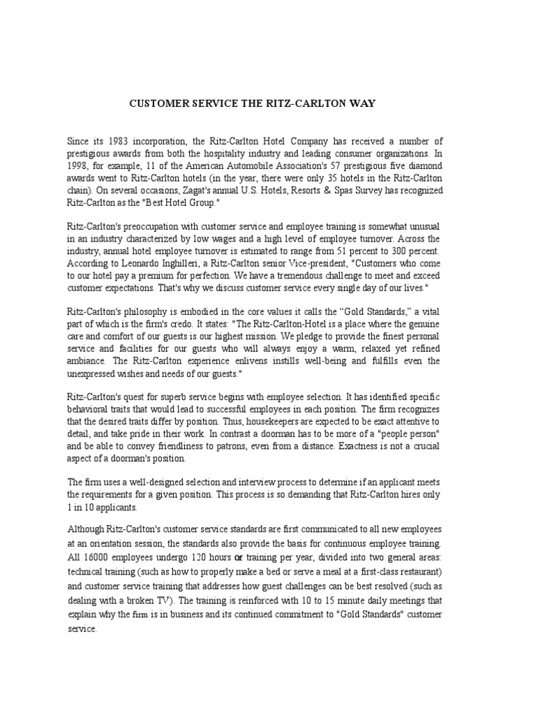 part of which is the firm's credo. It states: "The Ritz-Carlton-Hotel is a place where the genuine