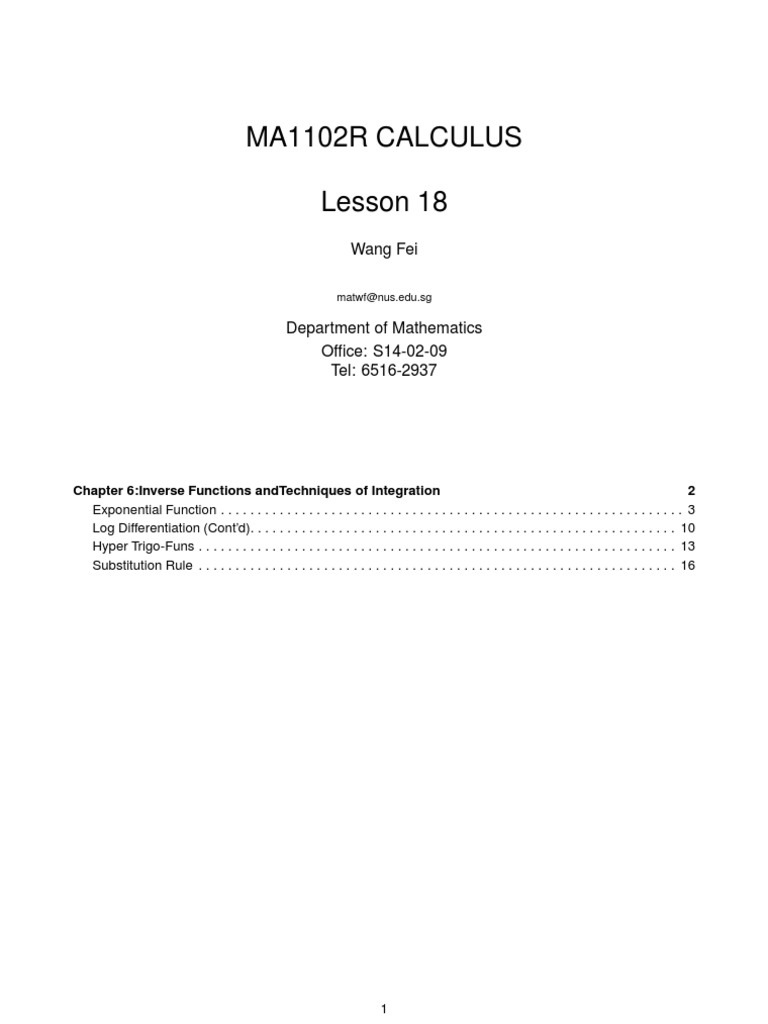 Substitution Rule . . . . . . . . . . . . . . . . . . . . . . . . . . . . . . . . . . . . . . . . . . . . . . . . . . . . . . . . . . . . . . . . . 16