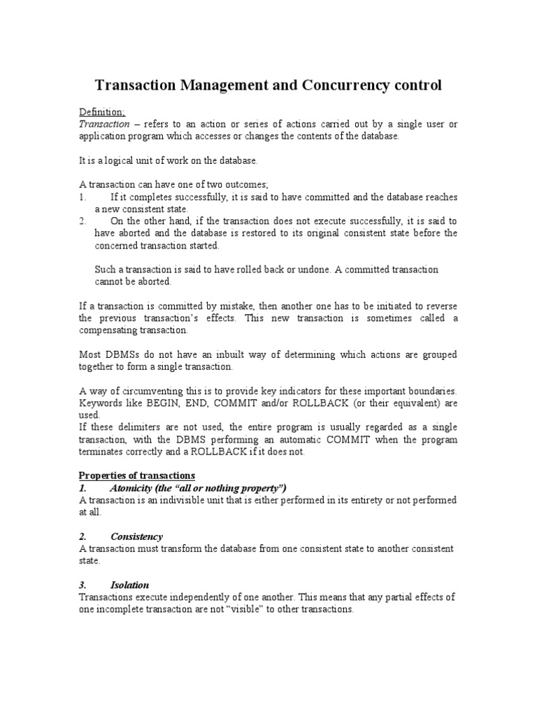 Transaction Management and Concurrency control