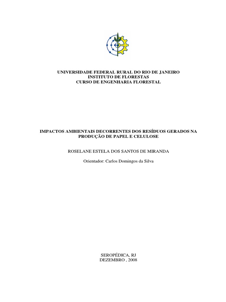 Palavras-chave: papel e celulose, resduos industriais, impactos ambientais, sistemas de