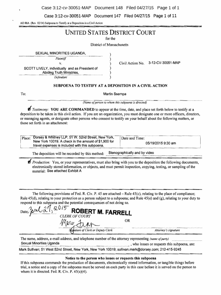 Sexual Minorities , who issues or requests this subpoena, are: Mark Sullivan;
