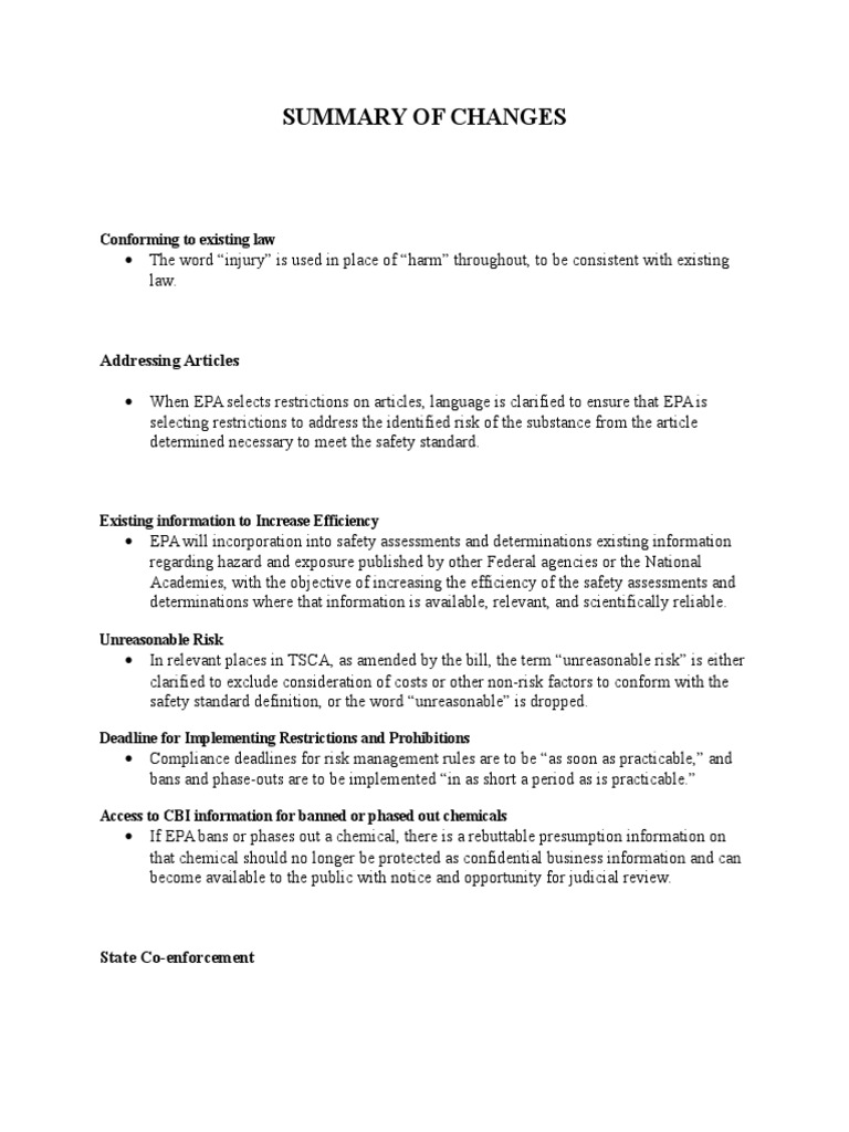 &n rele%ant places in T'(, as amended by the bill, the term “unreasonable ris!” is either clarified to exclude consideration of costs or other non)ris! factors to conform with the safety standard definition, or the word “unreasonable” is dropped.