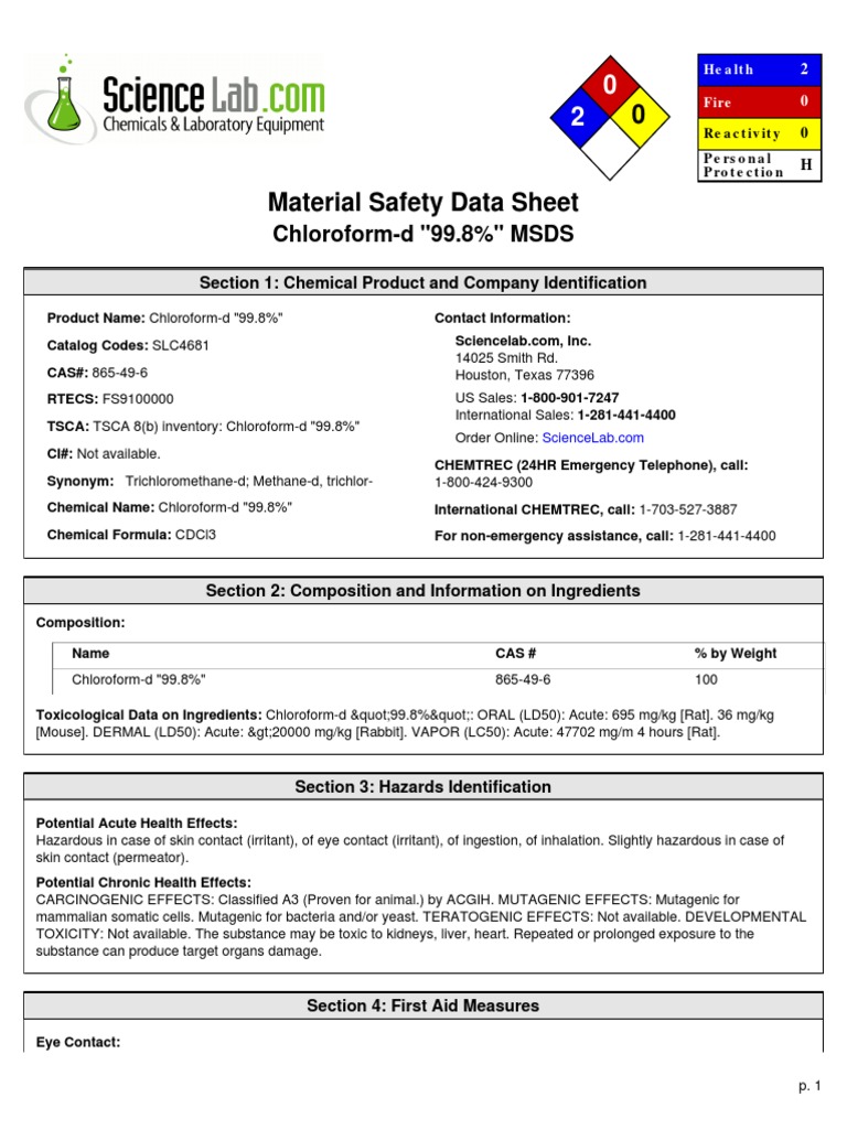 Chloroform-d "99.8%" MSDS
