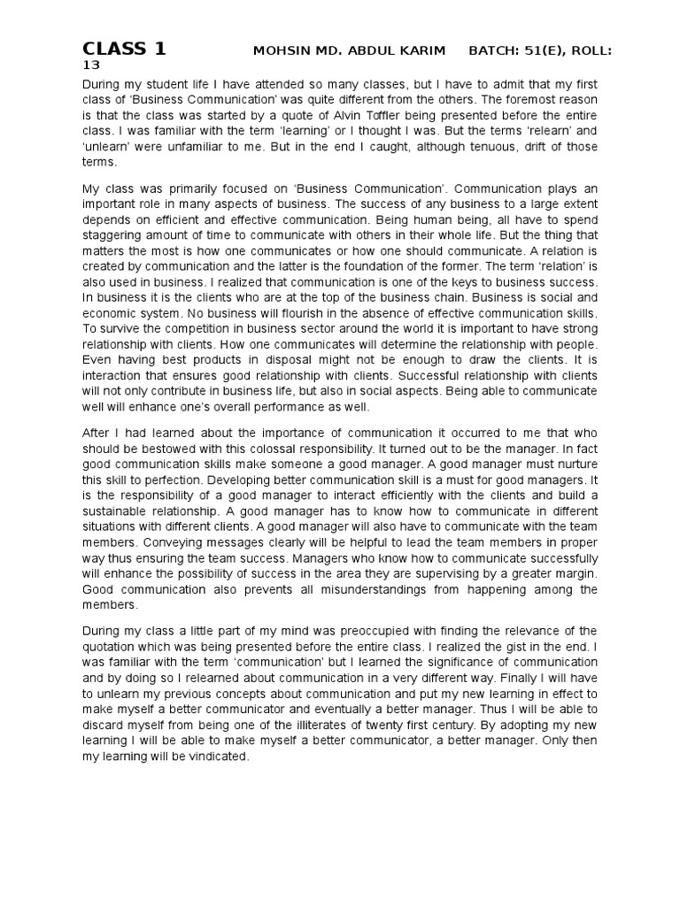learning I will be able to make myself a better communicator, a better manager. Only then