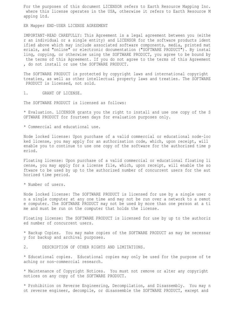 ER Mapper END-USER LICENSE AGREEMENT