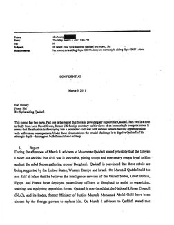 ‘This memo has two parts. Part one isthe report that Syria is providing air support for Qaddafi. Part two is a note