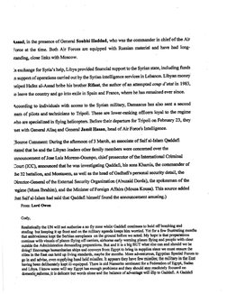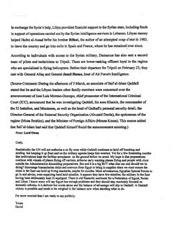 ‘This memo has two parts, Part one isthe report that Syria is providing air support for Qaddafi. Part two is a note