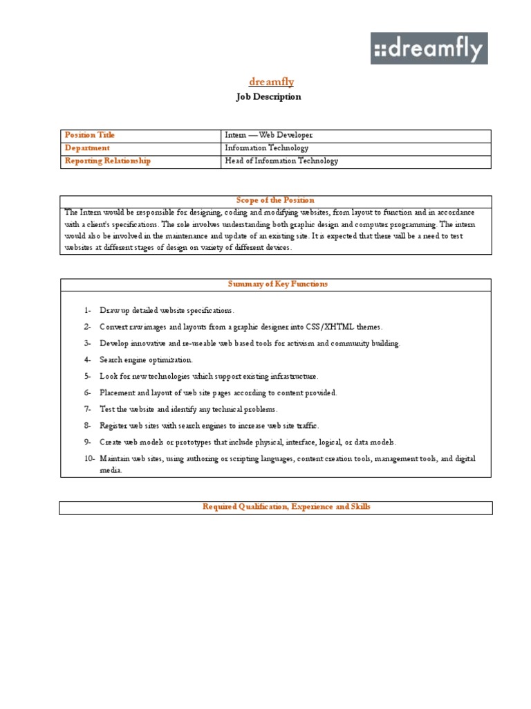 with a client's specifications. The role involves understanding both graphic design and computer programming. The intern