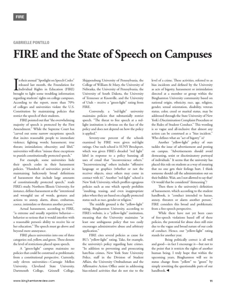More than 70% of colleges and universities violate the U.S. Constitution. Some universities hide their speech codes in their harassment policies. A "red-light" university maintains policies …