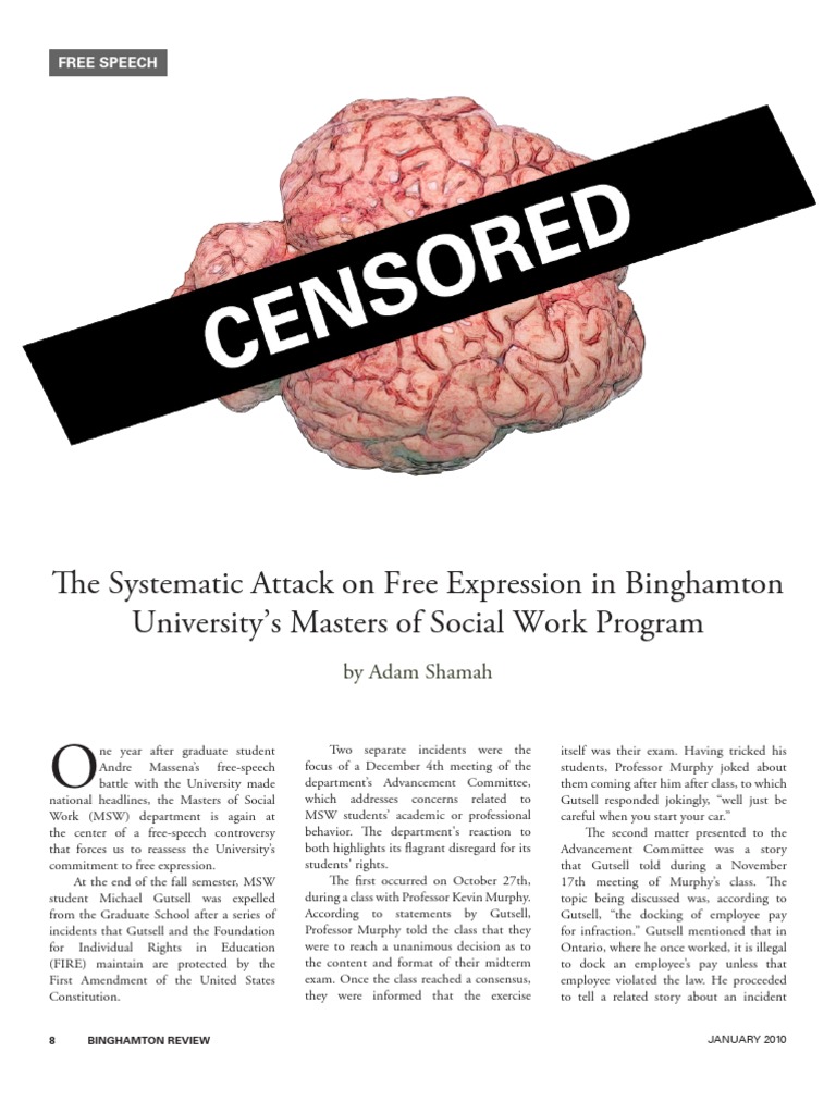 Binghamton's Masters of Social Work program is at the center of a free-speech controversy. Student Michael Gutsell was expelled from the program after a series of incidents. The department's reaction to both incidents highlights its disregard for students' rights.
