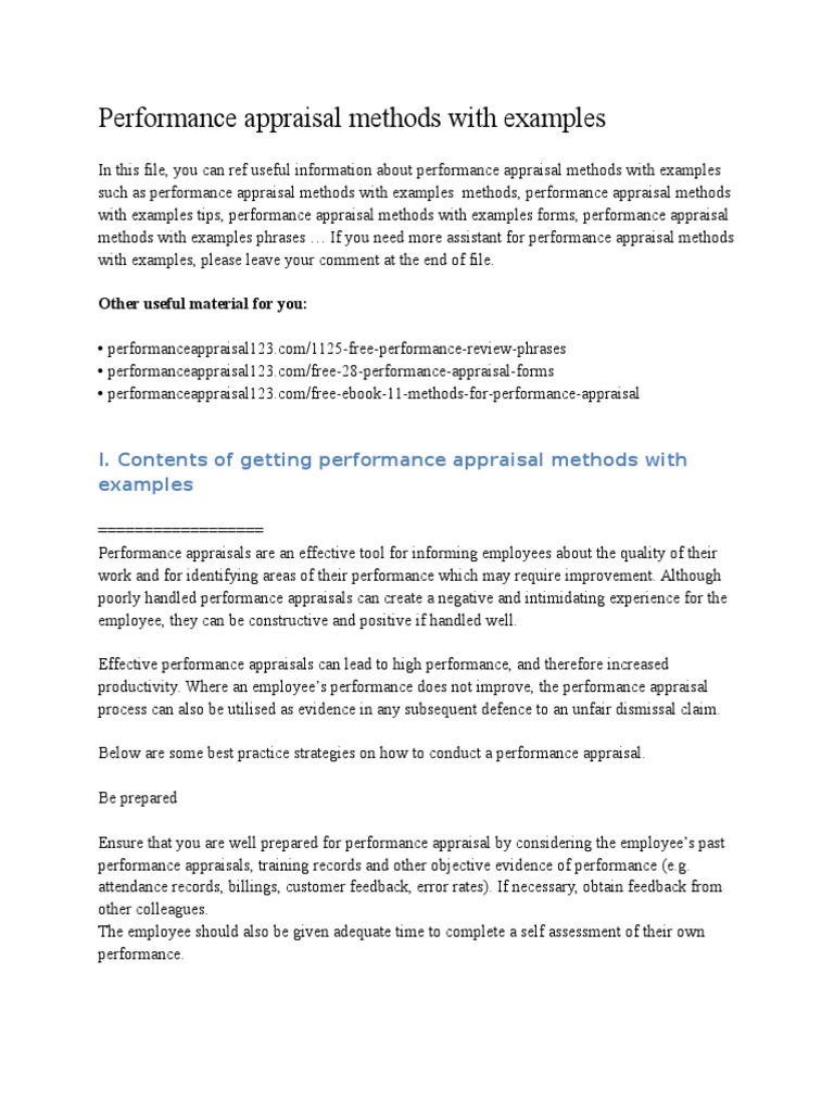methods with examples phrases If you need more assistant for performance appraisal methods