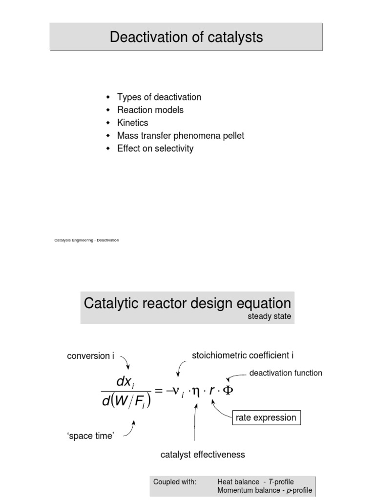 Examples of catalyst decay functions (see Froment & Bischoff)