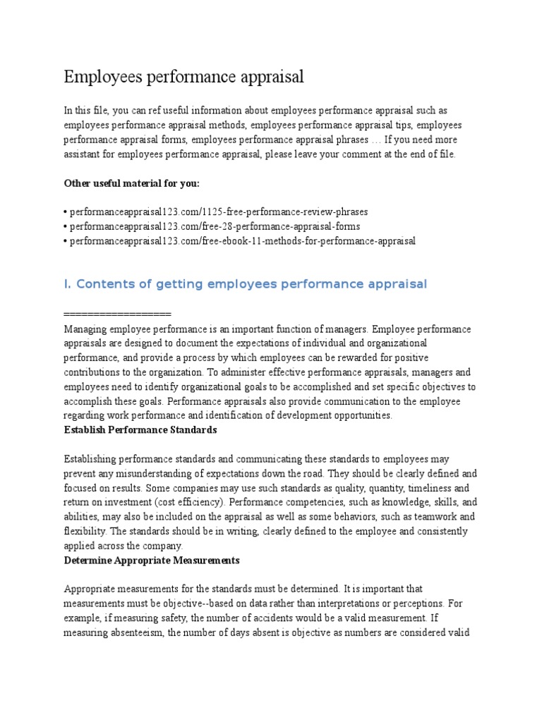 I. Contents of getting employees performance appraisal