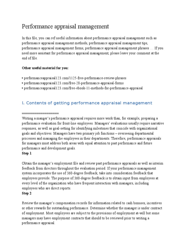 In this file, you can ref useful information about performance appraisal management such as