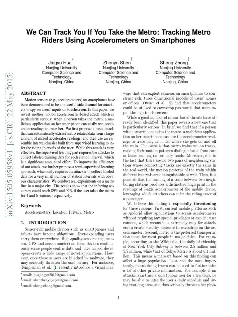 We Can Track You If You Take The Metro: Tracking Metro Riders Using Accelerometers On Smartphones