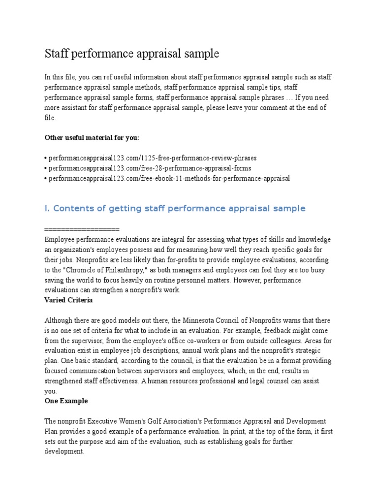Staff performance appraisal sample