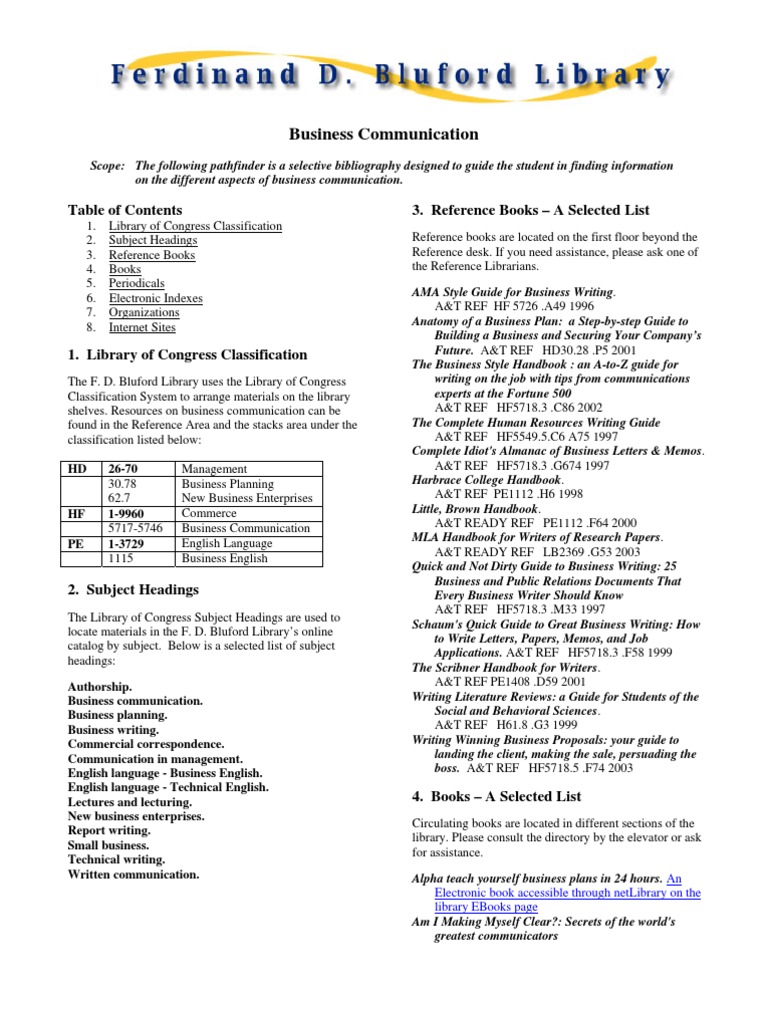 shelves. Resources on business communication can be A&T REF HF5718.3 .C86 2002