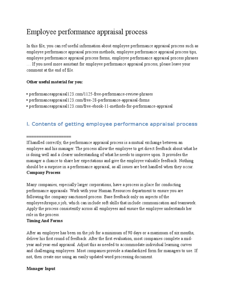 employee performance appraisal process forms, employee performance appraisal process phrases