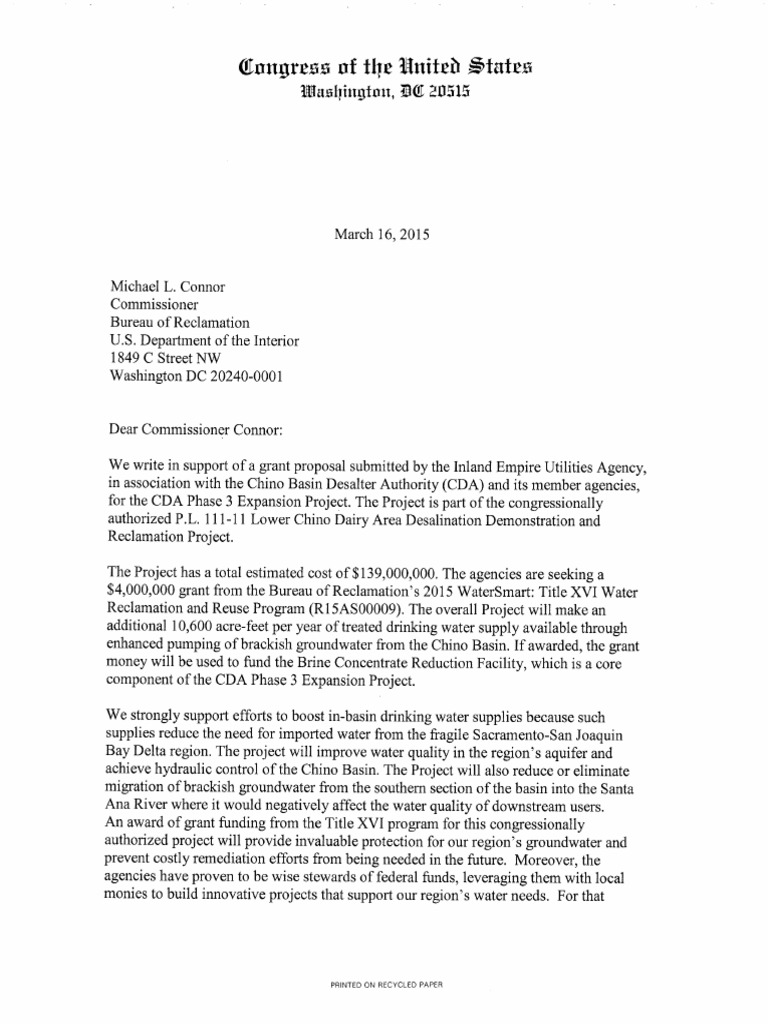Rep. Pete Aguilar (CA-31) led the Inland Empire’s congressional delegation to support the Inland Empire Utilities Agency’s application for a $5 million grant to help support its sustainable water initiative.