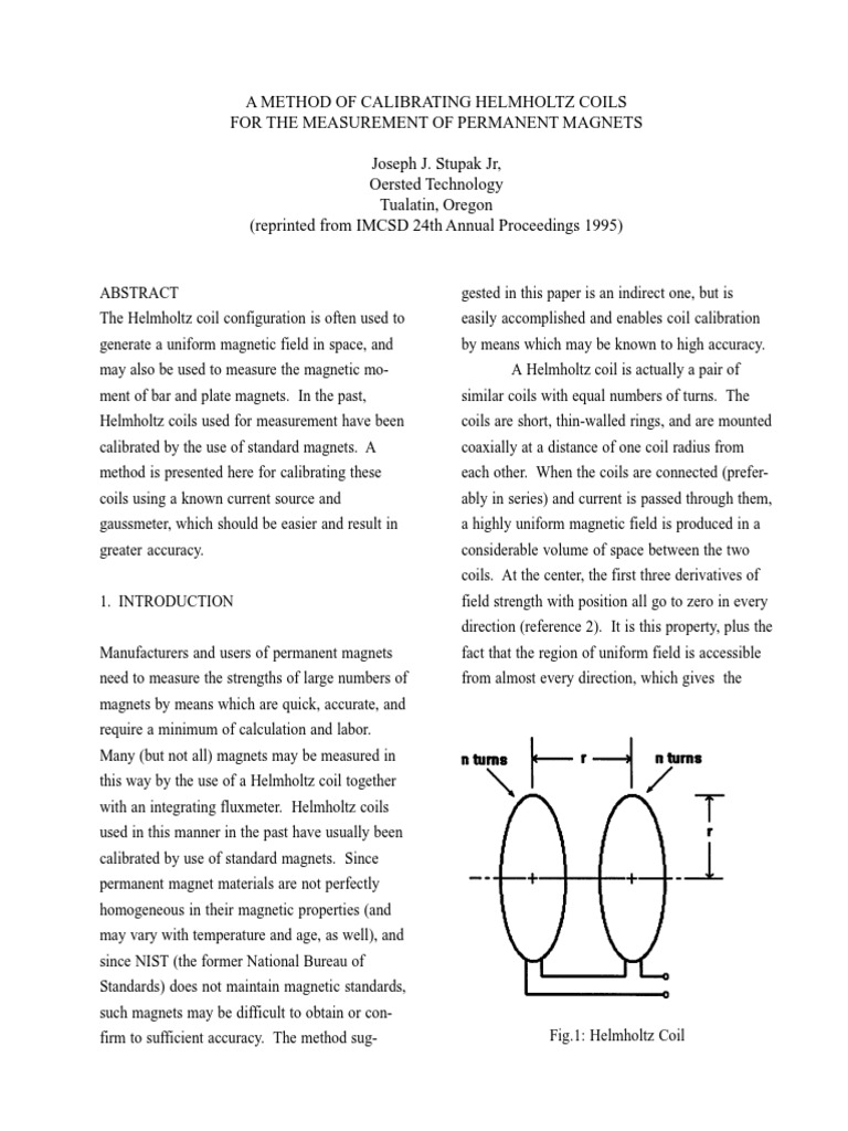 1. S. R. Trout, "Use of Helmholtz Coils for