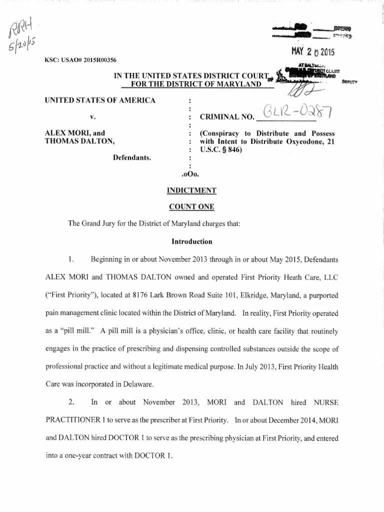 pain management clinic located within the District of Maryland. In reality, First Priority operated