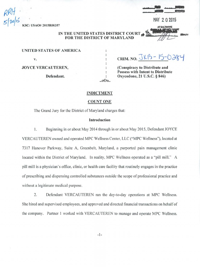 7317 Hanover Parkway, Suite A, Greenbelt. Maryland, a purported pain management clinic located within the District of Maryland. In reality, MPC Wellness operated as a pill mill. A