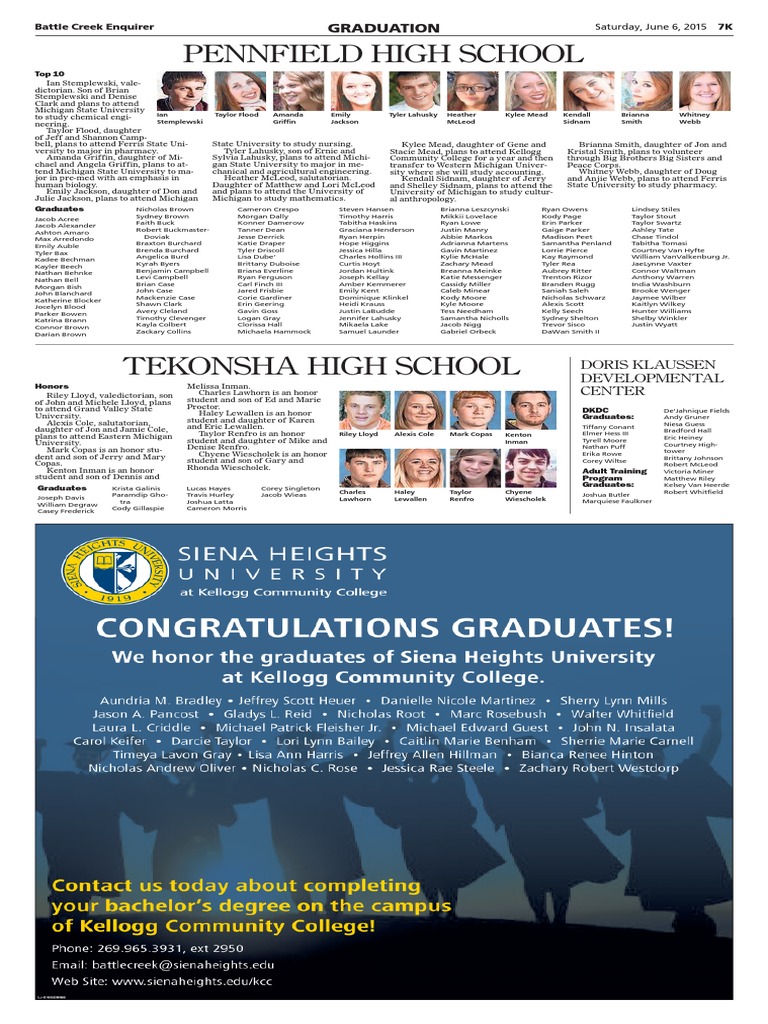 Amanda Griffin, daughter of Michael and Angela Griffin, plans to attend Michigan State University to major in pre-med with an emphasis in