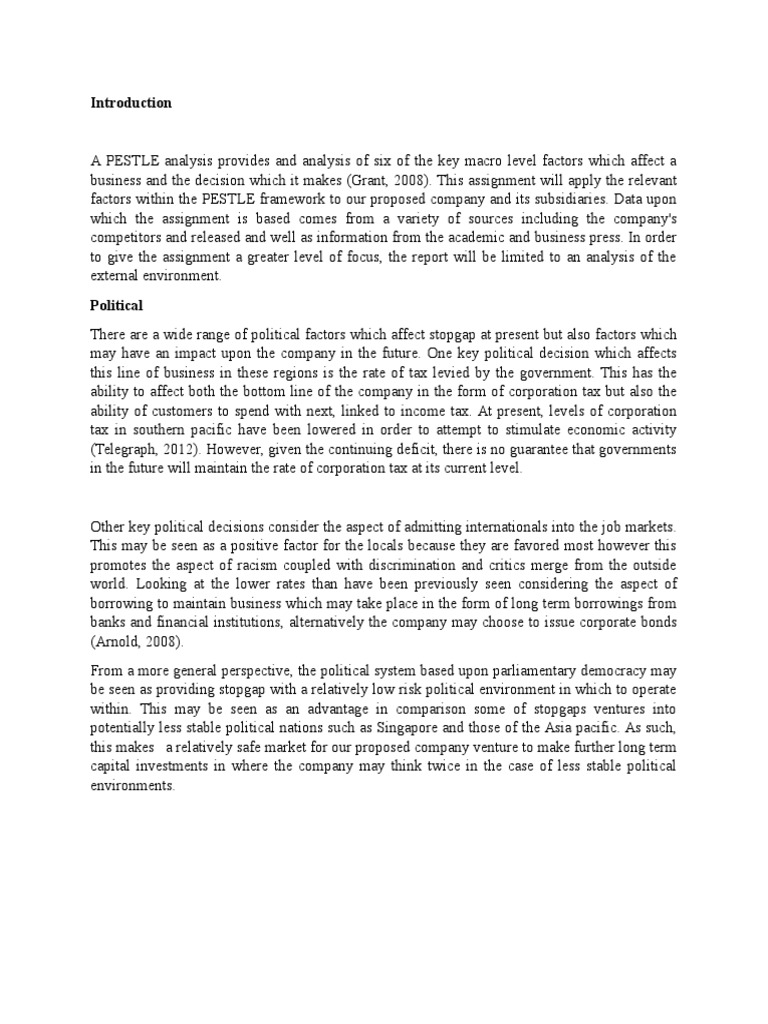 factors within the PESTLE framework to our proposed company and its subsidiaries. Data upon