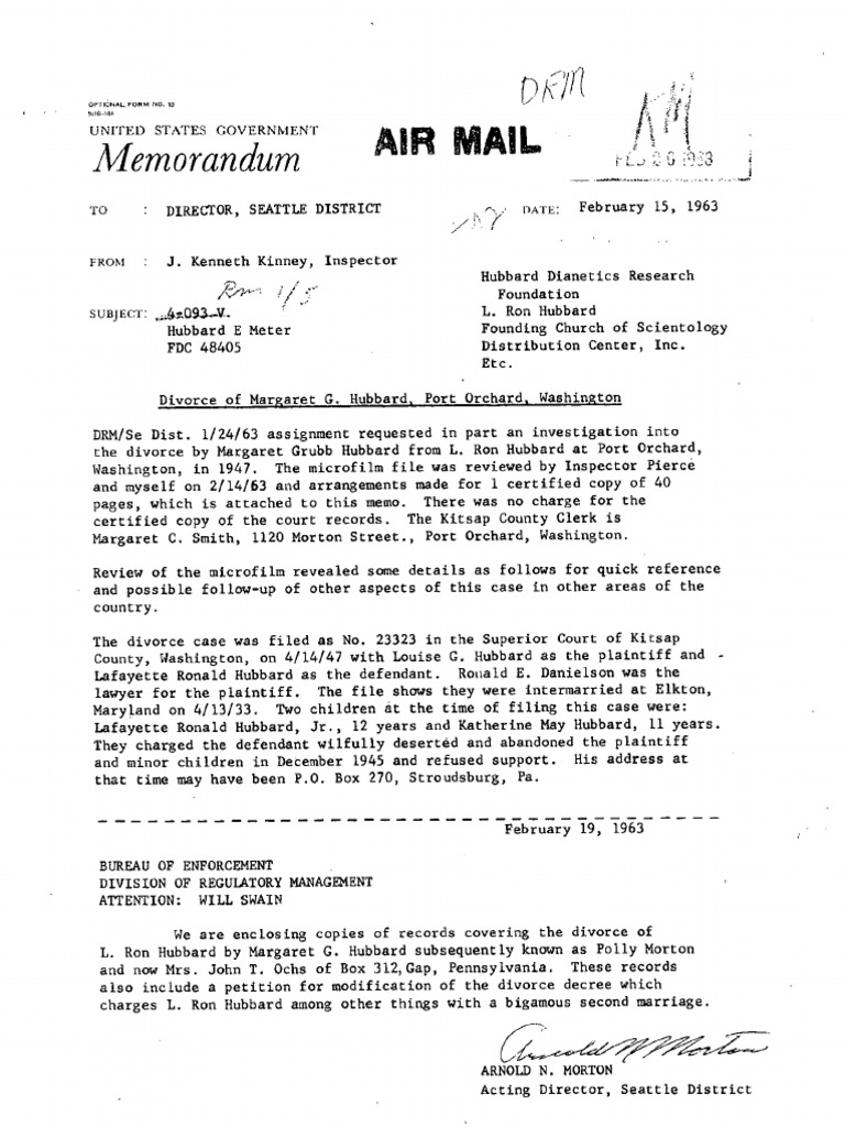 The FDA interviews L. Ron Hubbard's first wife in 1963