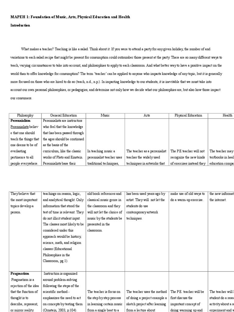 MAPEH 1: Foundation of Music, Arts, Physical Education and Health