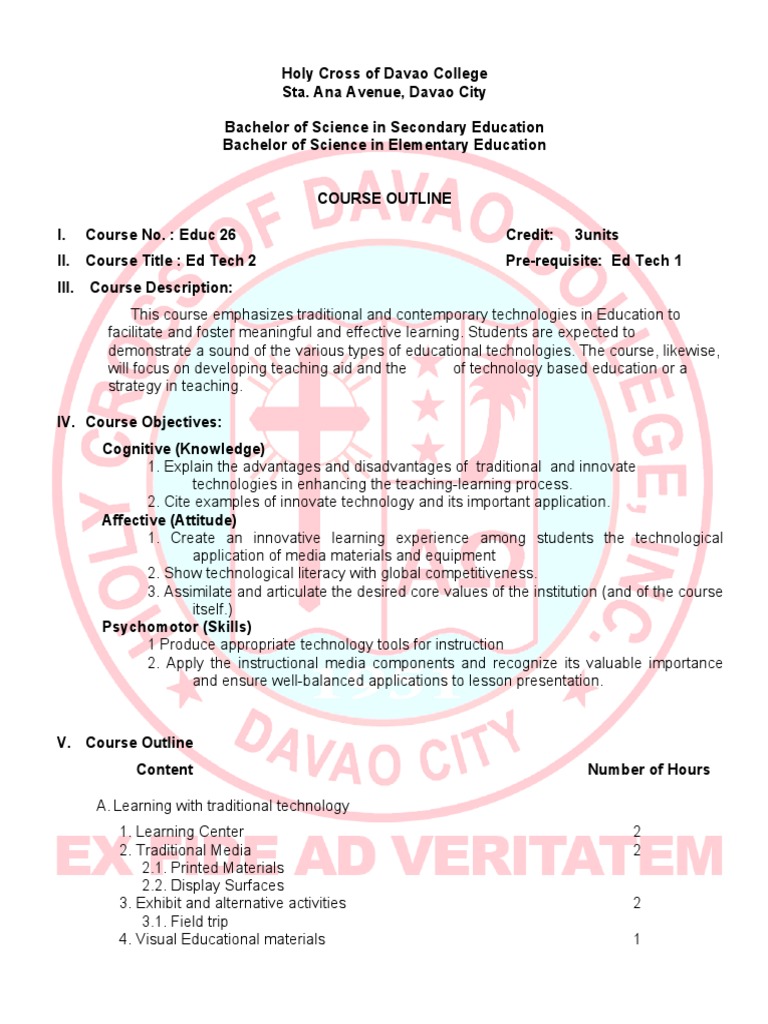 demonstrate a sound of the various types of educational technologies. The course, likewise,