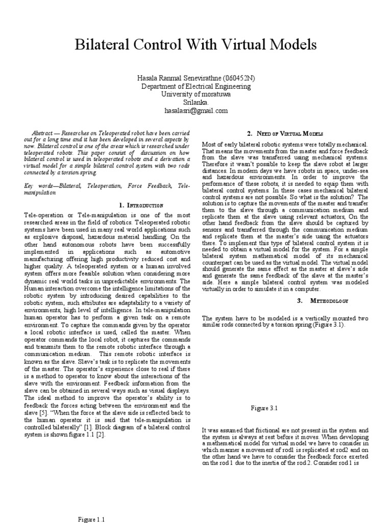 now. Bilateral control is one of the areas which is researched under Most of early bilateral robotic systems were totally mechanical.