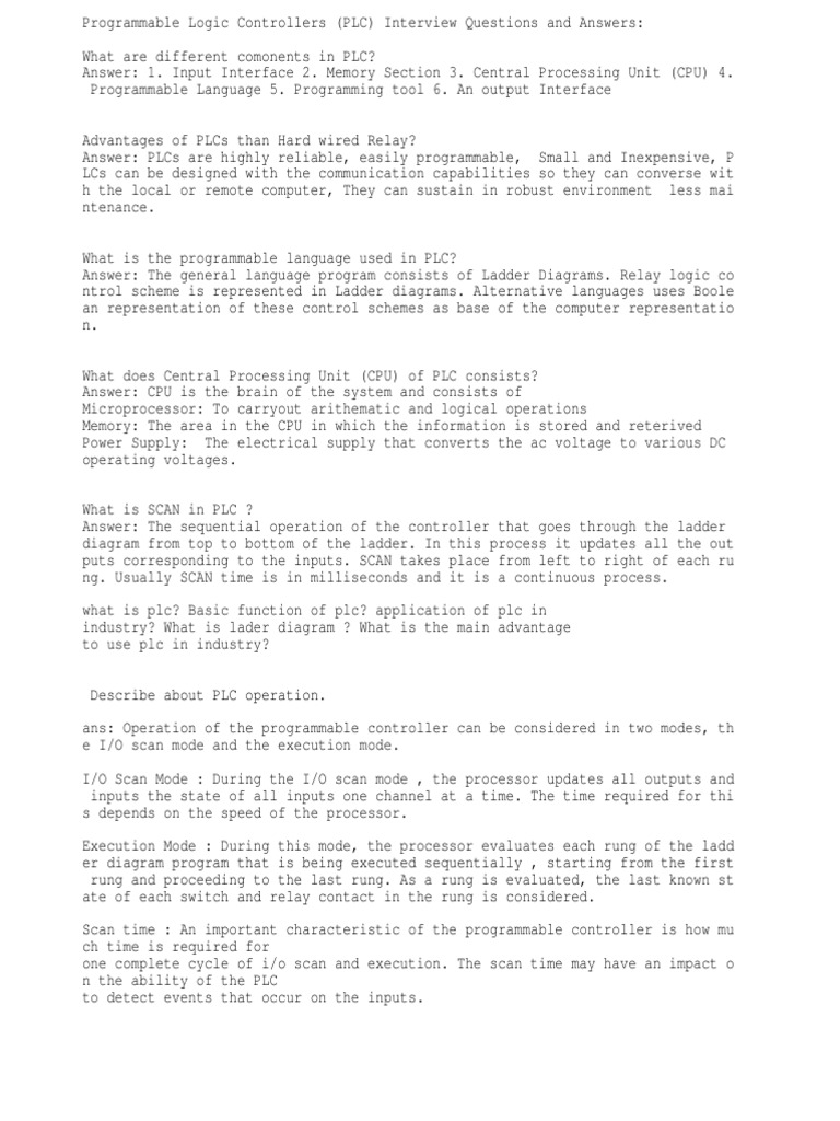 Programmable Logic Controllers (PLC) Interview Questions and Answers:
