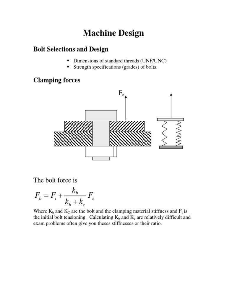 Where Kb and KC are the bolt and the clamping material stiffness and Fi is