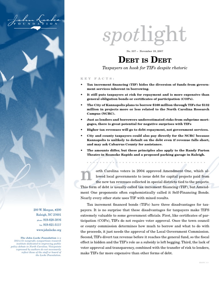contrary to the claims of advocates, TIFs an expensive form of debt that burdens taxpayers from the start.
