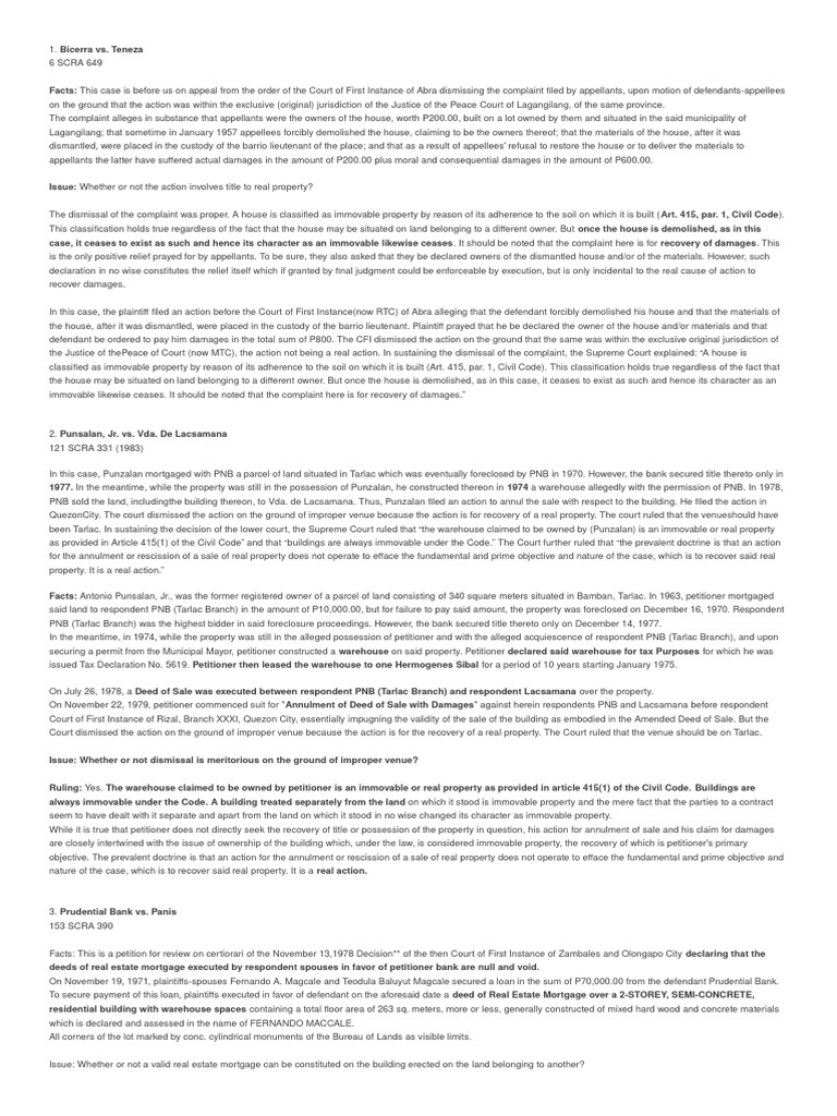 Ruling: Yes. In the enumeration of properties under Article 415 of the Civil Code of the Philippines, this Court ruled that, "it is obvious that the inclusion of 'building'