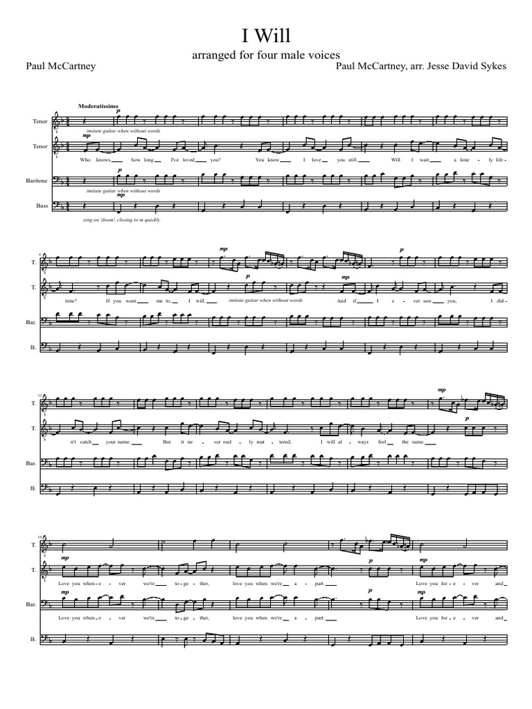 I Will: Arranged For Four Male Voices