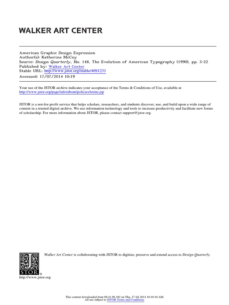 Walker Art Center is collaborating with JSTOR to digitize, preserve and extend access to Design Quarterly.